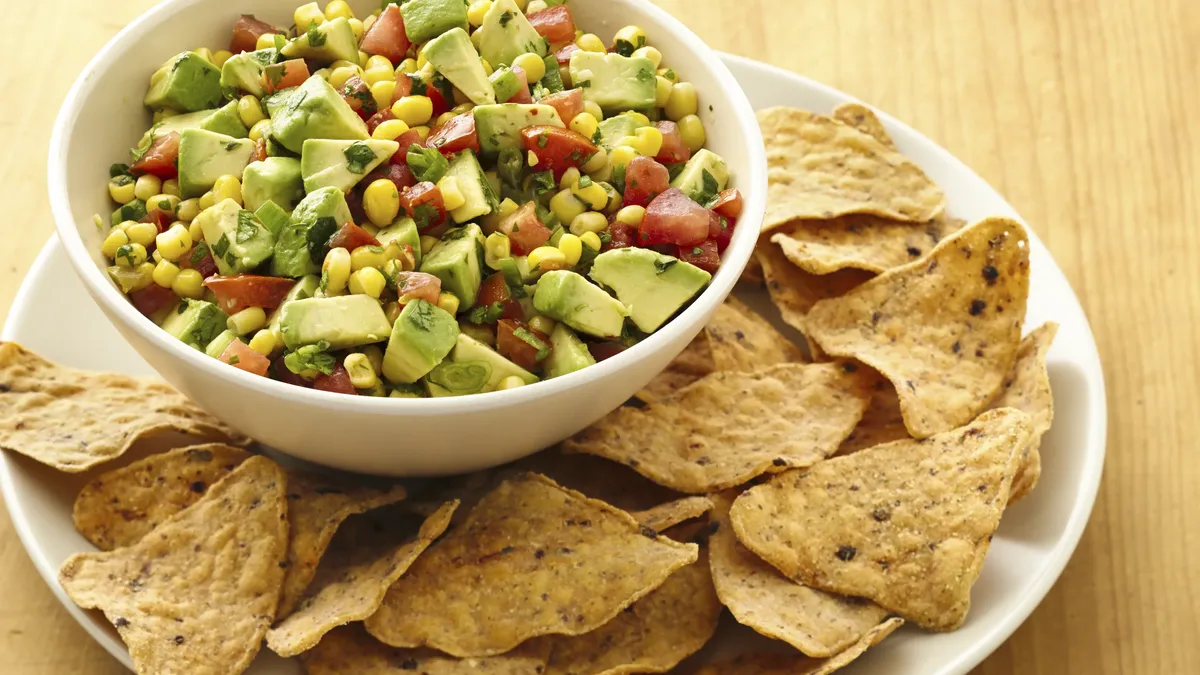 Get your veggies in—in a majorly fun way! This Corn and Avocado Salsa is a perfect dip for garden ranch roasted veggie tortilla chips. Have company coming over? You can prep a big bowl of avocado salsa in just 10 minutes, making it a great party appetizer.