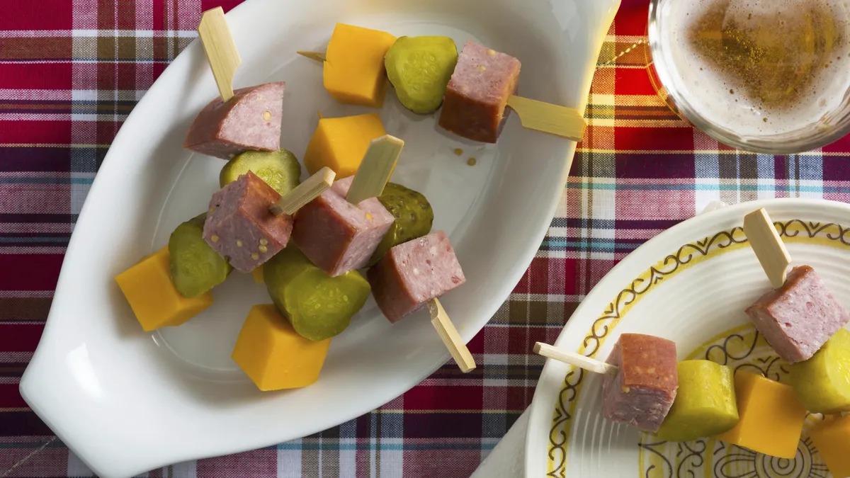 Instead of serving a cheese and sausage tray, make individual kabobs for a great grab-and-go appetizer.