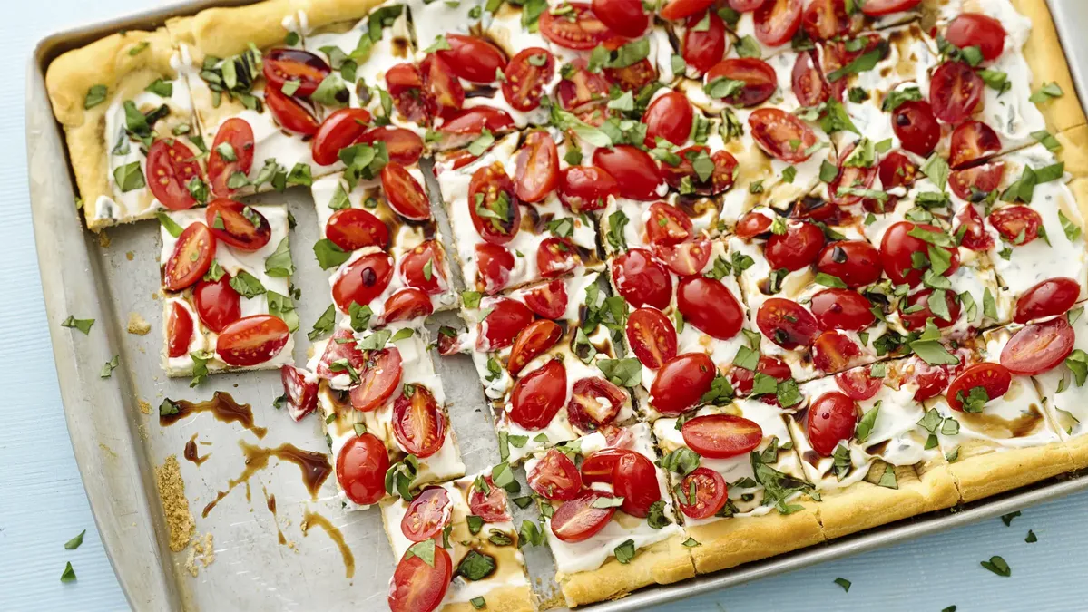Try this updated spin on the classic party favorite--Veggie Pizza. Your family and friends will love it.