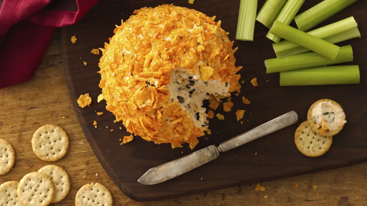 Spice up the appetizer table with this south-of-the-border take on a cheese ball. Pepper Jack cheese turns up the heat, cilantro and lime add fresh zest and a crushed tortilla-chip coating adds crunch.
